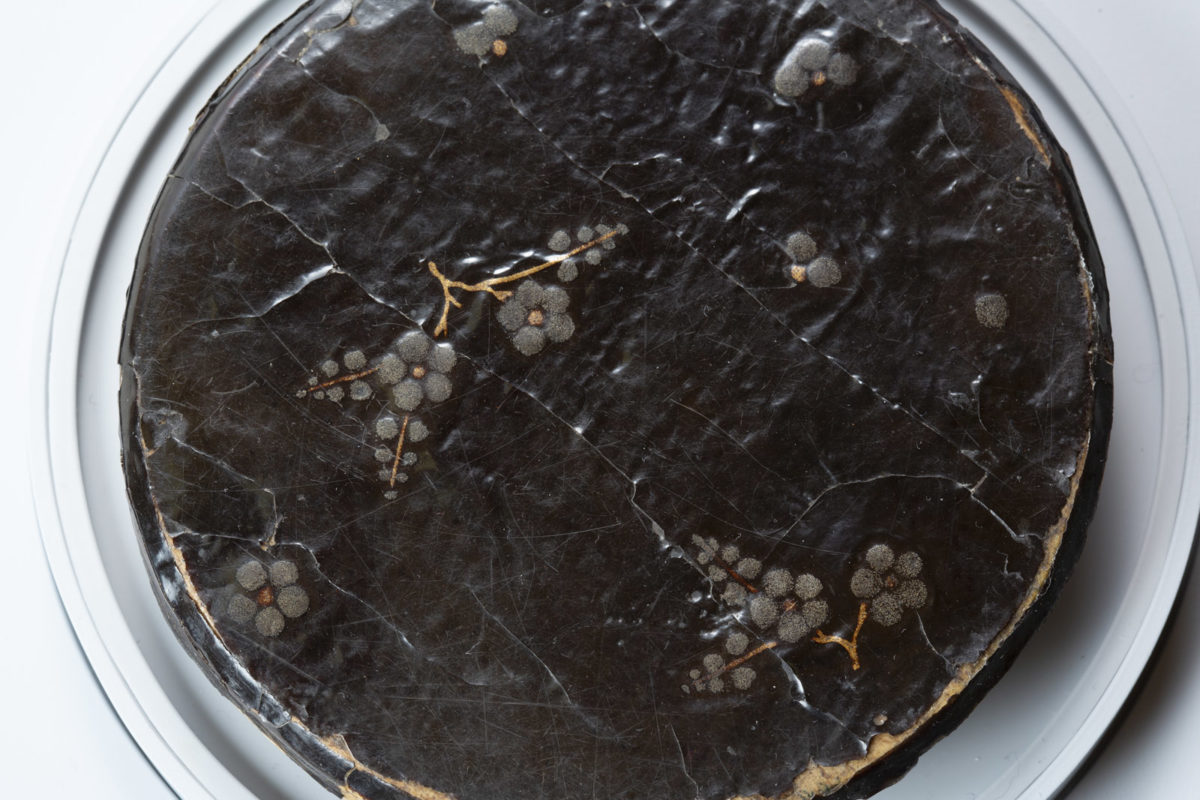 เป็นตลับกระจกที่ใช้เทคนิคการประดับตกแต่งในสมัยนั้นอย่างเต็มที่เช่นเดียวกับอุโบสถสีทอง มันถูกผลิตขึ้นที่ฮิราอิซูมิ แสดงให้เห็นว่าฮิราอิซูมิในสมัยนั้นมีความงามของงานศิลปหัตถกรรมสุดละเอียดละออมารวมตัวกันอยู่