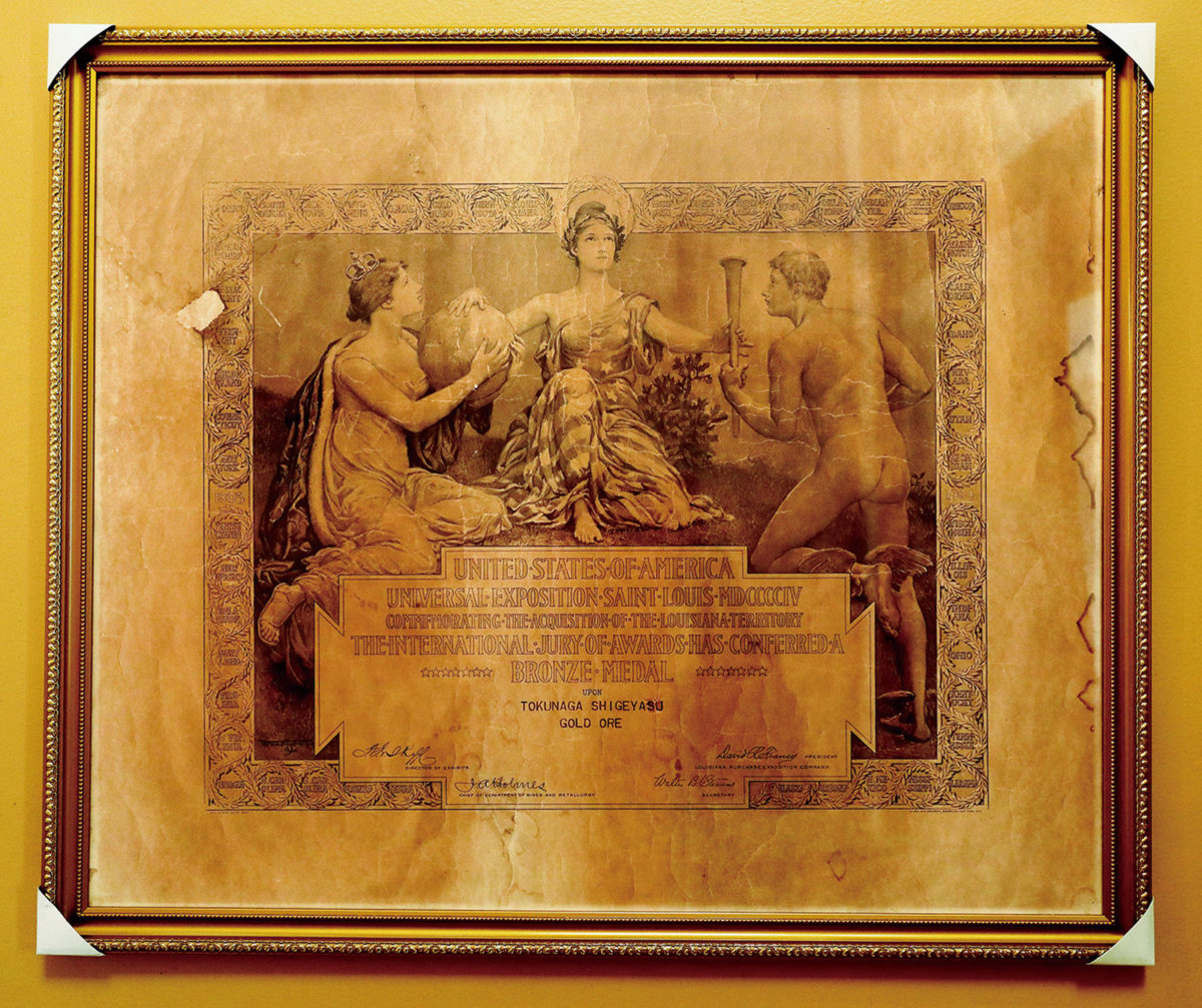 เหมืองทองชิชิโอริได้ขุดพบ "มอนสเตอร์โกลด์" ทองคำสัตว์ประหลาดที่มีน้ำหนัก 2.25 กิโลกรัมและอัตราส่วนของทองอยู่ 83% ท่ามกลางสถานการณ์ที่ขุดก้อนทองขนาดเล็กก็ว่ายากแล้ว ความใหญ่โตของมันทำให้ทั่วโลกเกิดความตื่นตะลึง จนถูกนำไปจัดแสดงที่งานนิทรรศการนานาชาติที่เซนต์หลุยส์ ประเทศสหรัฐอเมริกาที่จัดขึ้นในปีเดียวกันนั้น และได้รับรางวัลเหรียญทองแดงมา สิ่งนี้เป็นใบประกาศเกียรติคุณที่เป็นที่ระลึกในการได้รับรางวัลนั้นมา ถือเป็นเครื่องหมายที่แสดงพลังของ "จิปัง ประเทศแห่งทองคำ" ให้ประจักษ์ต่อสายตาชาวโลก และแสดงให้เห็นถึงสภาพความเป็นจริงของการผลิตทองในมิจิโนกุ